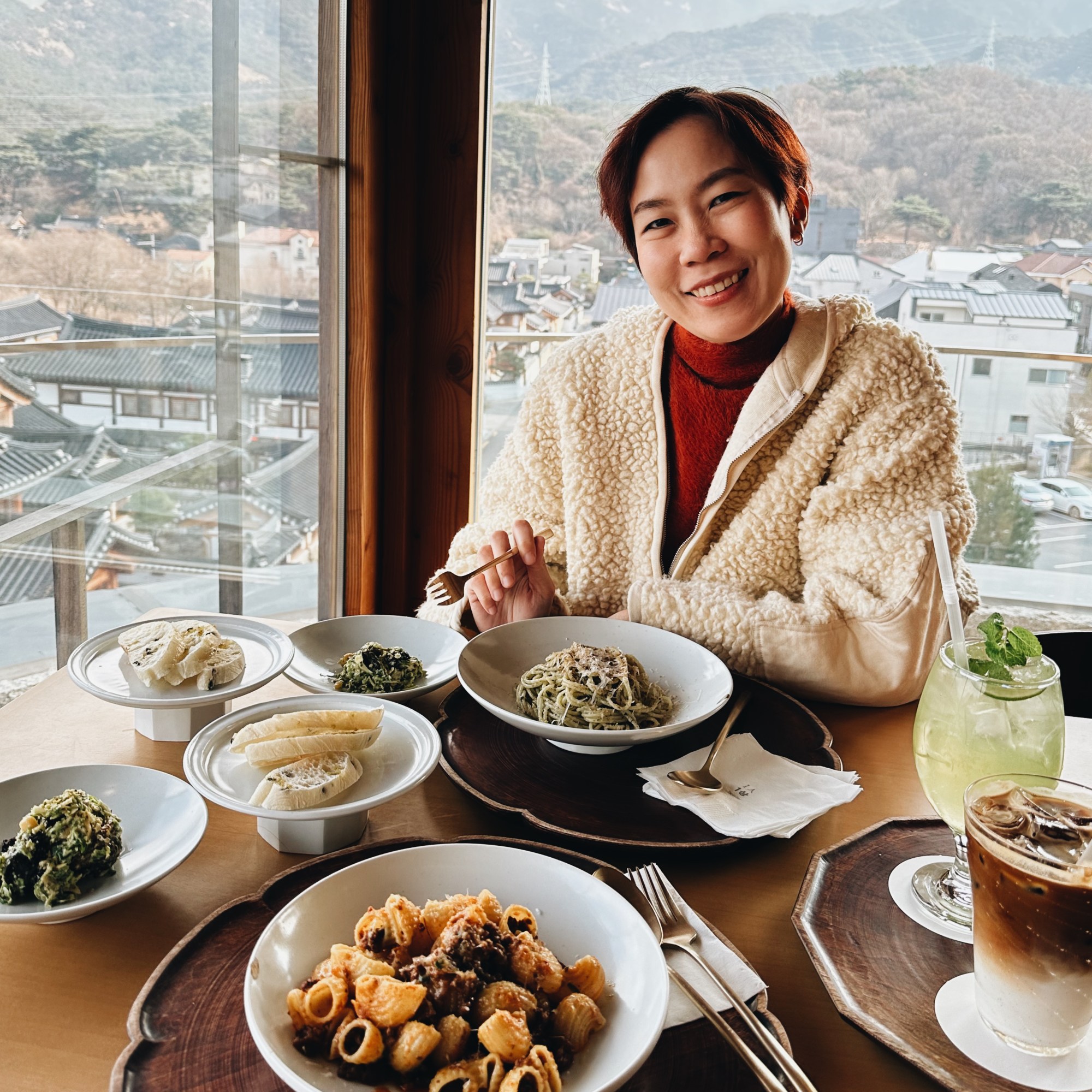 เราเดินทางออกมานอกเมืองไกลหน่อยเพื่อมา Eunpyong Hanok ที่นี่ก็เป็นหมู่บ้านโบราณเช่นกันแต่ว่าเป็นการสร้างขึ้นมาใหม่ ที่นี่จะเดินง่ายกว่า Bukchon เพราะเป็นพื้นราบ ไม่ต้องเดินขึ้นเนินชันๆ มีที่ถ่ายรูปที่หลากหลายกว่า นักท่องเที่ยวน้อยกว่า และคาเฟ่ที่เค้าฮิตไปนั่งกันก็คือ Irin Iljan ที่อยู่ติดริมถนน สามารถนั่งชมวิวหมู่บ้านจากคาเฟ่นี้ได้เช่นกันค่ะ เราเดินเล่นและนั่งชิวอยู่ที่นี่ถึงช่วงบ่ายๆ เลย จากนั้นก็กลับเข้าใจกลางเมือง ไปเดินเล่น ชอปปิ้งแถวฮงแด และปิดท้ายมื้อเย็นด้วยร้านปูดองอาจุมม่า ทางเดินไปร้านอาจจะลึกลับนิดหน่อย แต่ว่าอร่อยจริง นอกจากปูดอง เราลองสั่งอย่างอื่นมาด้วย ไข่ตุ๋นดี แต่ผัดปลาอันนี้อาจไม่ใช่สัมผัสที่คนไทยคุ้นเคย เนื้อปลาจะแข็งๆ เราไม่ค่อยชอบเท่าไหร่ แต่อย่างอื่นดีมาก!