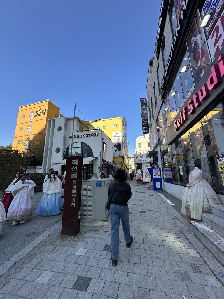 จากนั้นก็ไป Bukchon Hanok ที่นี่เป็นโซนหมู่บ้านโบราณที่กินพื้นที่พอสมควร มีนักท่องเที่ยวมาเดินถ่ายรูปตามถนน ซอย หน้าบ้านต่างๆ เยอะมากกกก ระหว่างทางก็จะมีร้านเช่าชุดฮันบกอยู่บ้างประปราย ใครที่อยากได้ฟีลก็มาหาเช่าที่นี่ได้