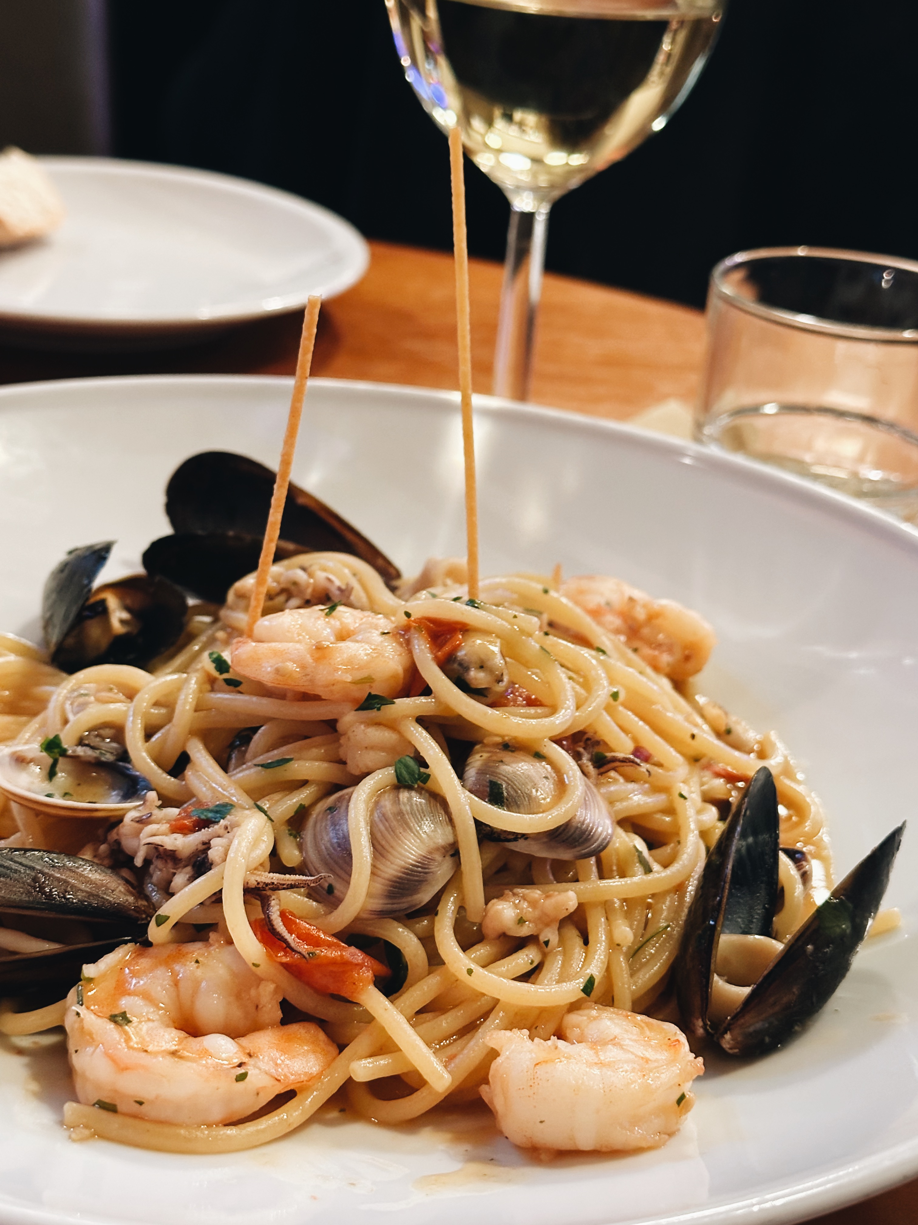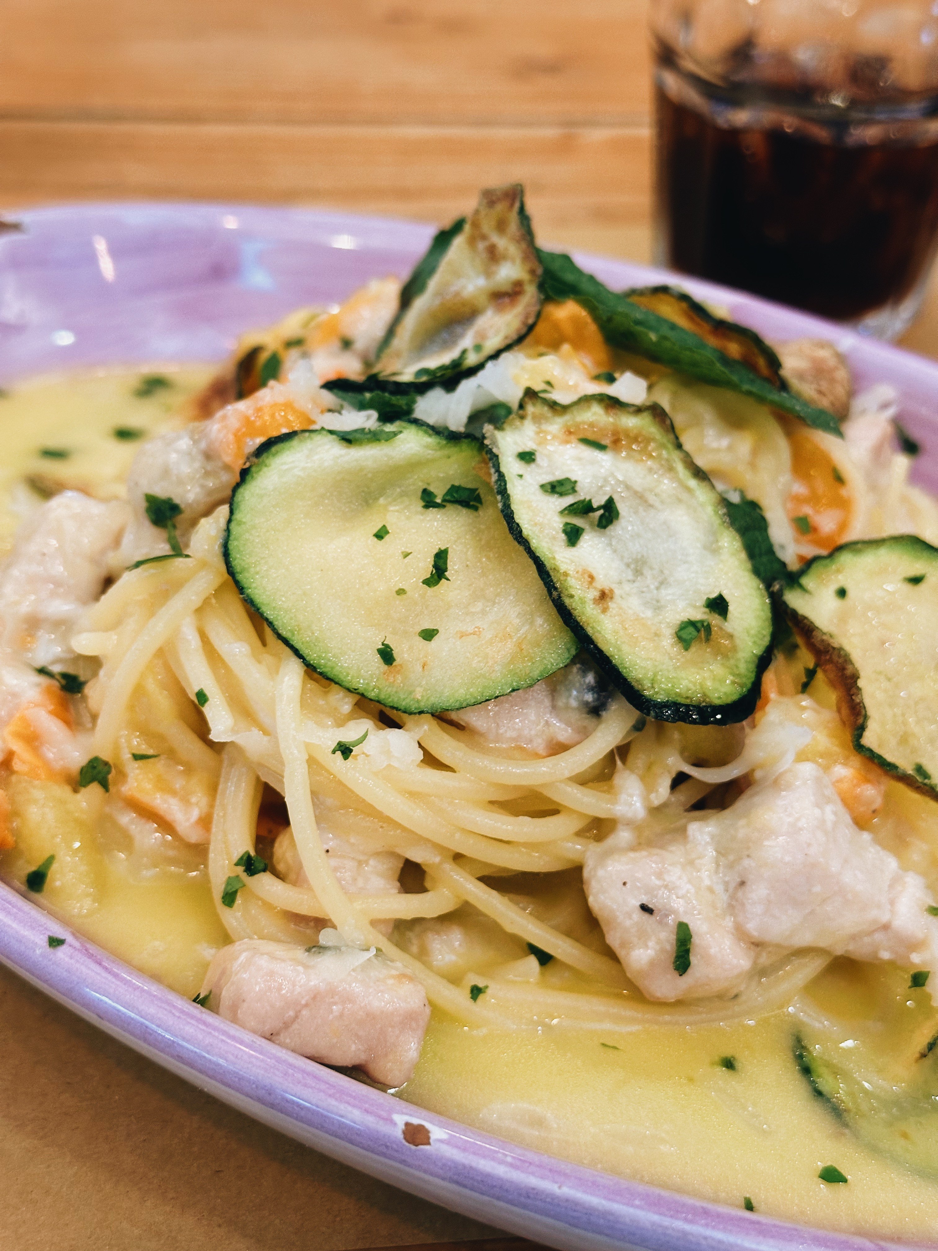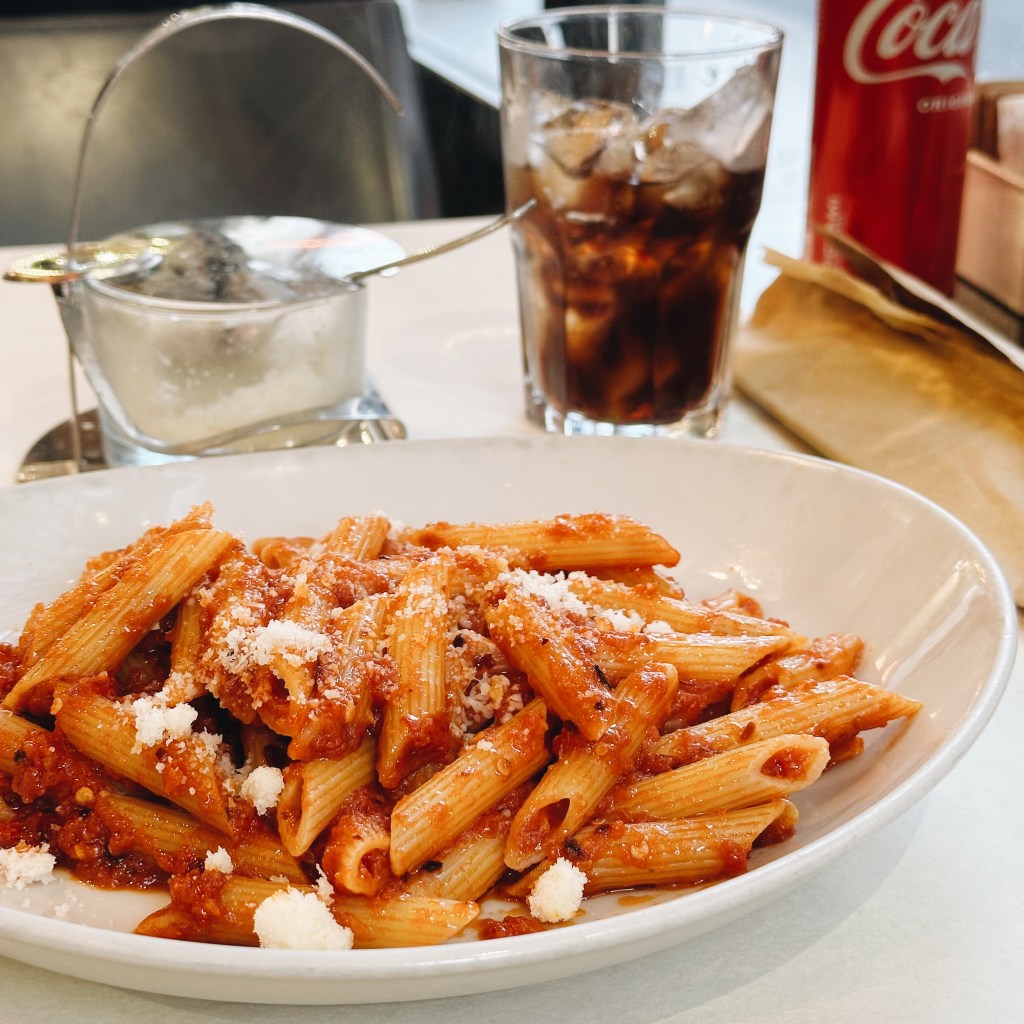 หลังจากเดินจนฉ่ำใจ เราก็ต้องออกหาของกินอร่อยๆ ในละแวกใกล้เคียง ซึ่งบอกตามตรงว่าไม่มี ฮ่าๆ เราเลยลองหาดูจากในแมปว่ามีร้านดีๆ ที่ใกล้ที่สุดอยู่ตรงไหนบ้าง ก็เลยได้มาจบที่ร้าน Magnamm ถ้าเดินอย่างเดียวก็ประมาณ 15 นาที ไกลอยู่แต่ก็คุ้มค่ามากค่ะ ร้านนี้คนแน่นร้านพอสมควร บรรยากาศค่อนข้างกันเอง เราเดินเข้าไปแบบอ่านอะไรในนั้นไม่ออกซักคำ เพราะเมนูเป็นภาษาอิตาเลียนล้วน ก็จิ้มๆ เมนูพาสต้าไปอันนึง จำไม่ได้ด้วยว่าชื่ออะไรแต่อร่อยเฉย แม้ว่าหน้าตาจะดูจืดๆ ครีมมี่ๆ แต่มีอะไรไม่รู้เค็มๆ มาตัดเลี่ยน รวมๆ แล้วชอบค่ะ