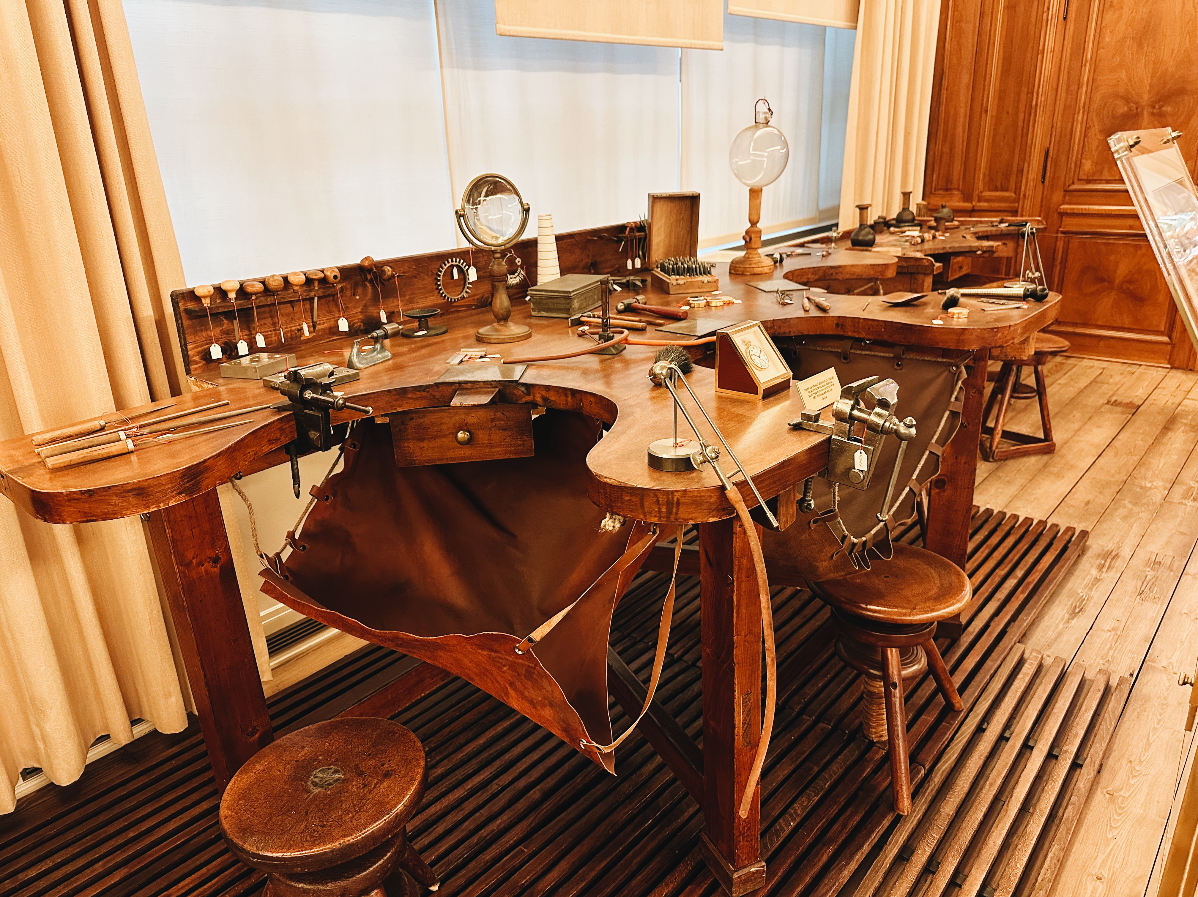 จัดแสดงโซนทำงานของช่างนาฬิกาและเครื่องมือต่างๆ ที่ใช้ประกอบนาฬิกา