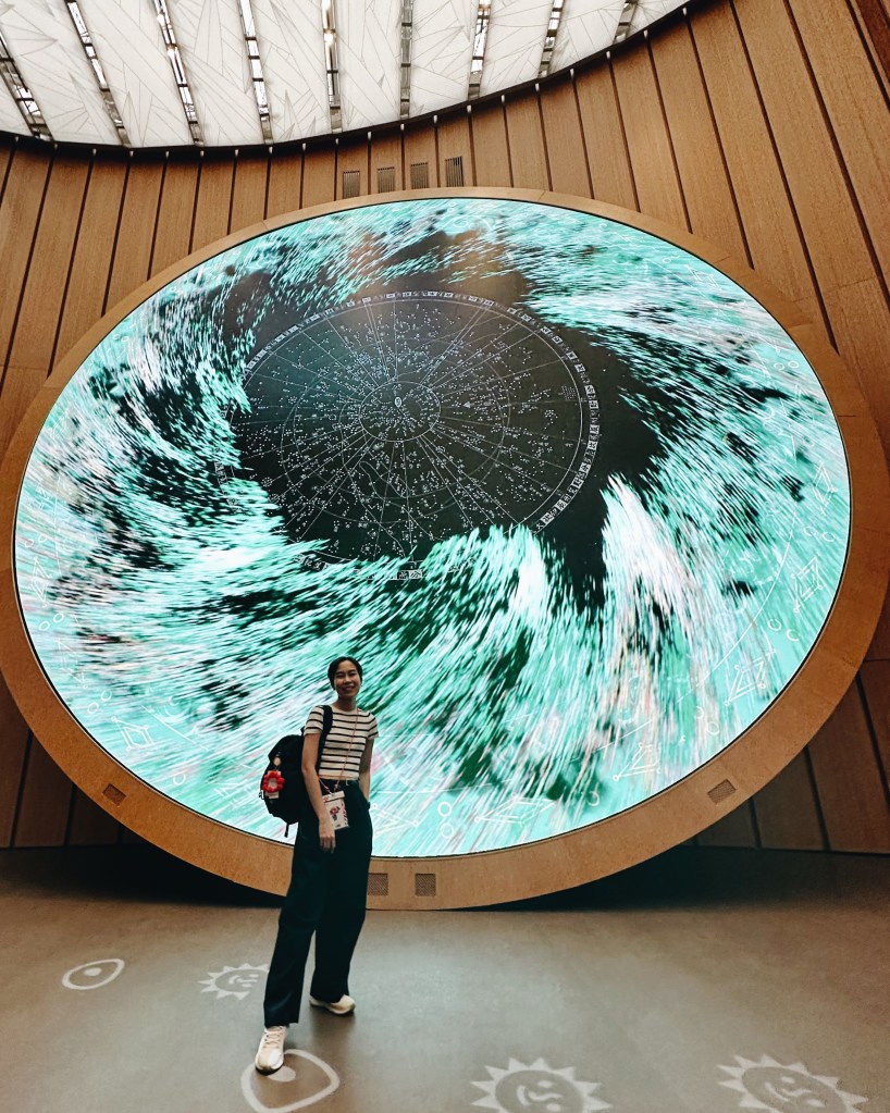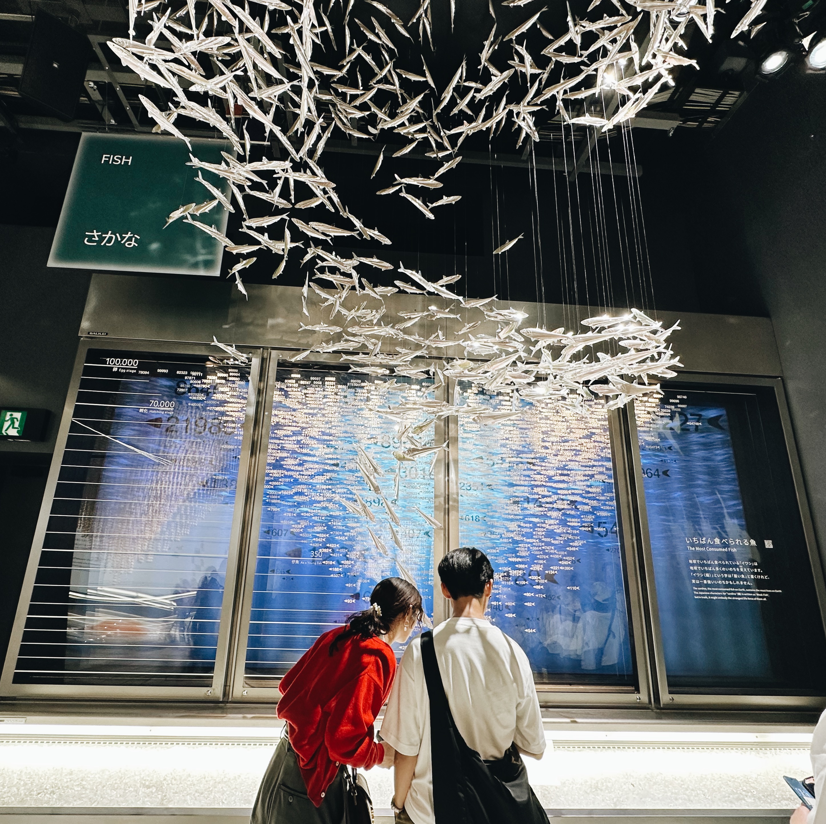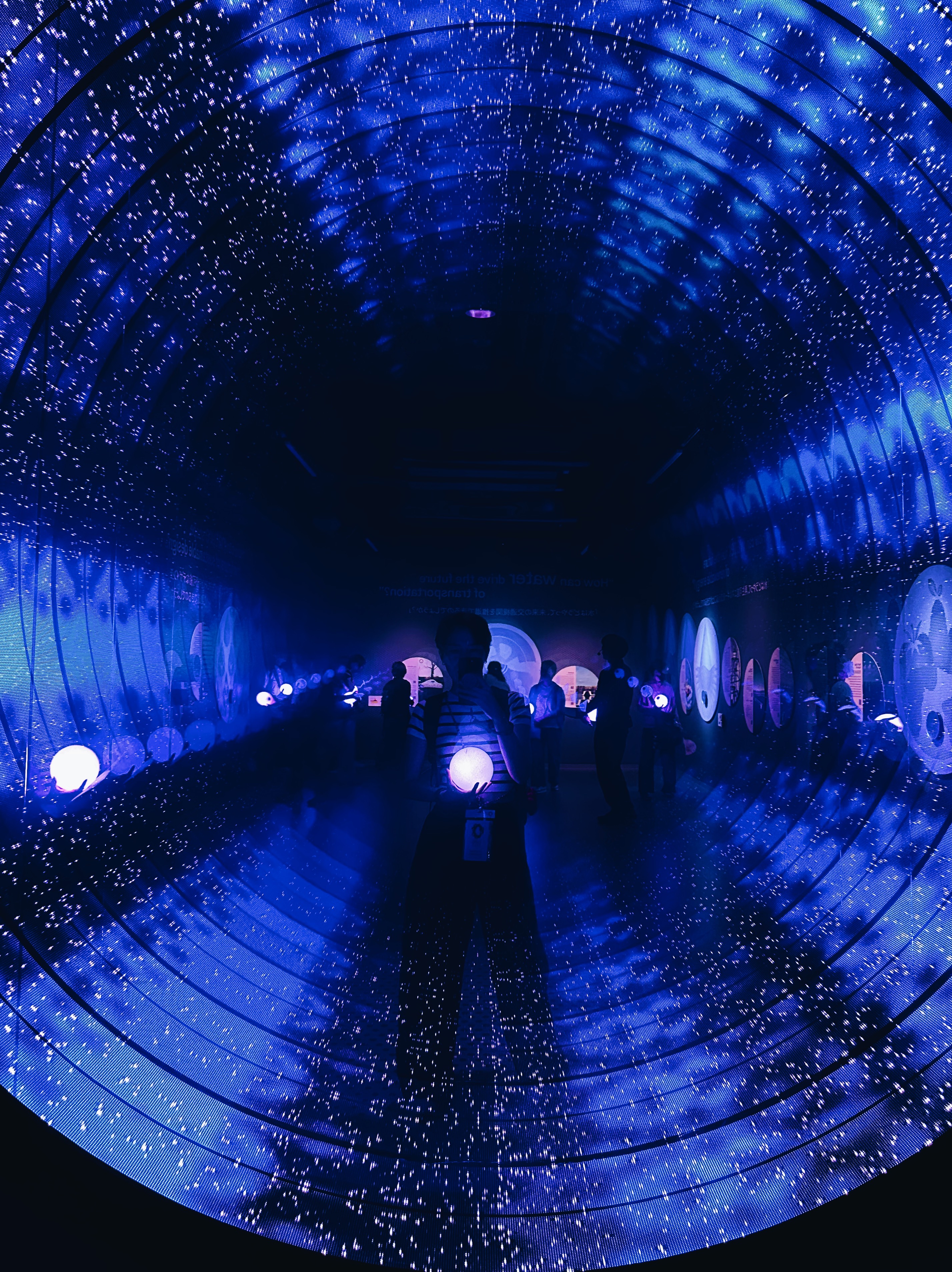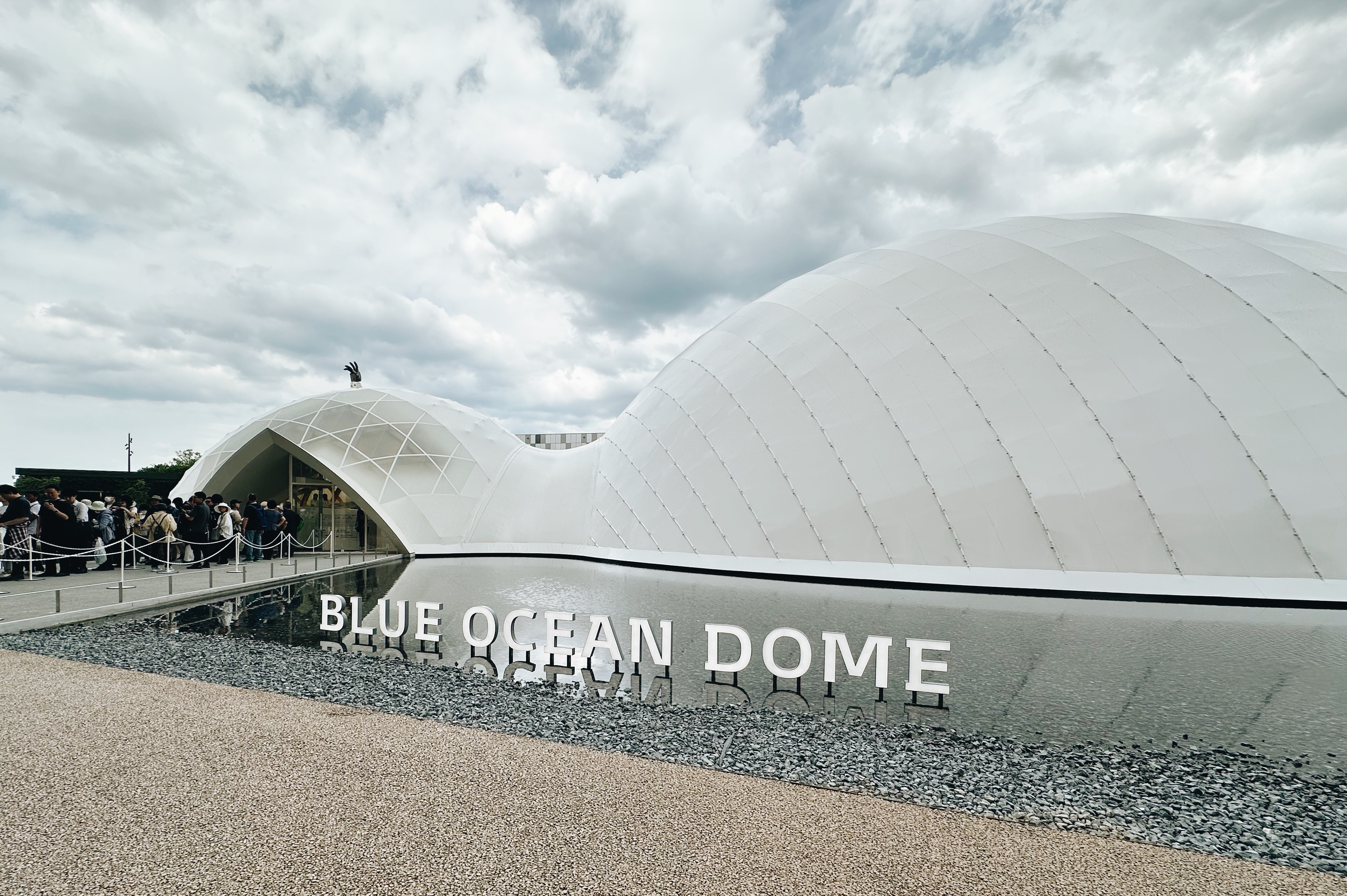 - Blue Ocean Dome: หลายคนอาจจะเห็นคลิปจาก Pavilion นี้แล้ว เพราะเป็น Installation ที่ดูเพลินมากในรหว่างรอเข้าชมห้องต่างๆ โดยเนื้อหาหลักจะเล่าเรื่องการรักษาระบบนิเวศน์ทางทะเล มี 3 โดม โดยเมื่อเดินเข้าไปโดมแรกเราจะเจอกับ Installation น้ำไหล ประกอบการให้ข้อมูลว่า Pavilion นี้สร้างจากวัสดุ 3 อย่างคือ ไม้ไผ่ CFRP (Carbon Fiber Reinforced Plastic) และกระดาษ ซึ่งเมื่อจบงานแล้ว Pavilion นี้มีแผนว่าจะถูกรื้อถอนและนำไปติดตั้งใหม่ที่เกาะมัลดีฟส์! โดมถัดมาจะเป็นส่วนให้เราดูหนังเกี่ยวกับระบบนิเวศน์ทางทะเล และโดมสุดท้ายจะจัดแสดงโปรดักต่างๆ ที่เป็นนวัตกรรมค่ะ
