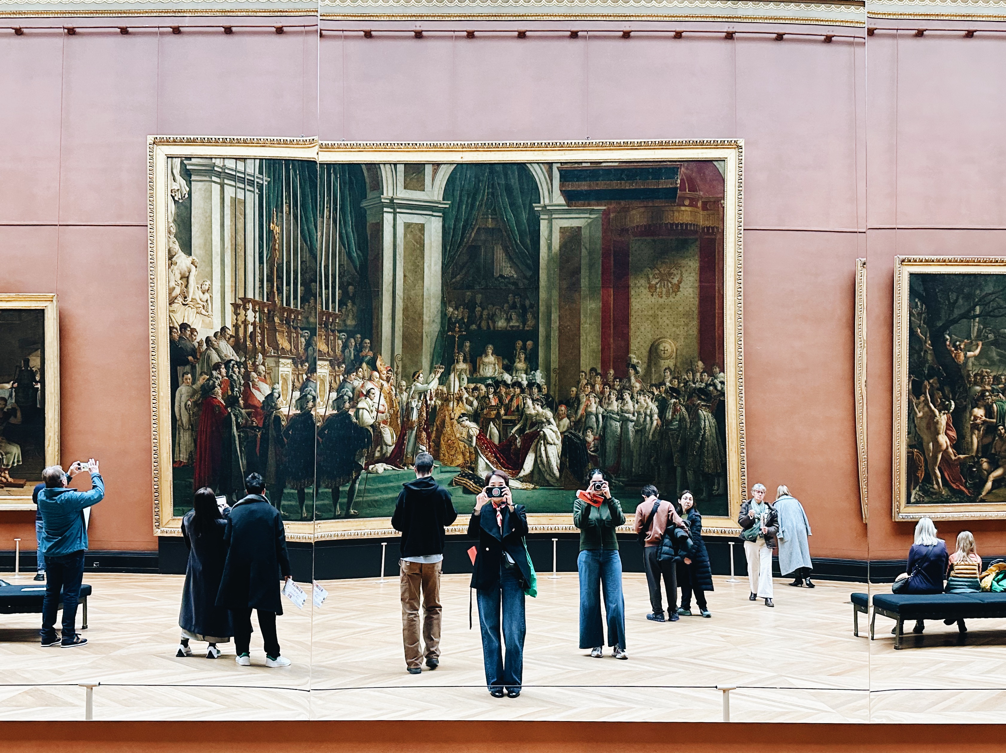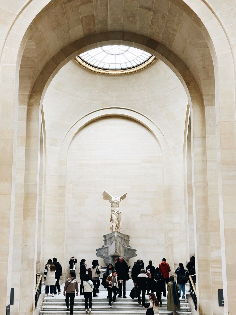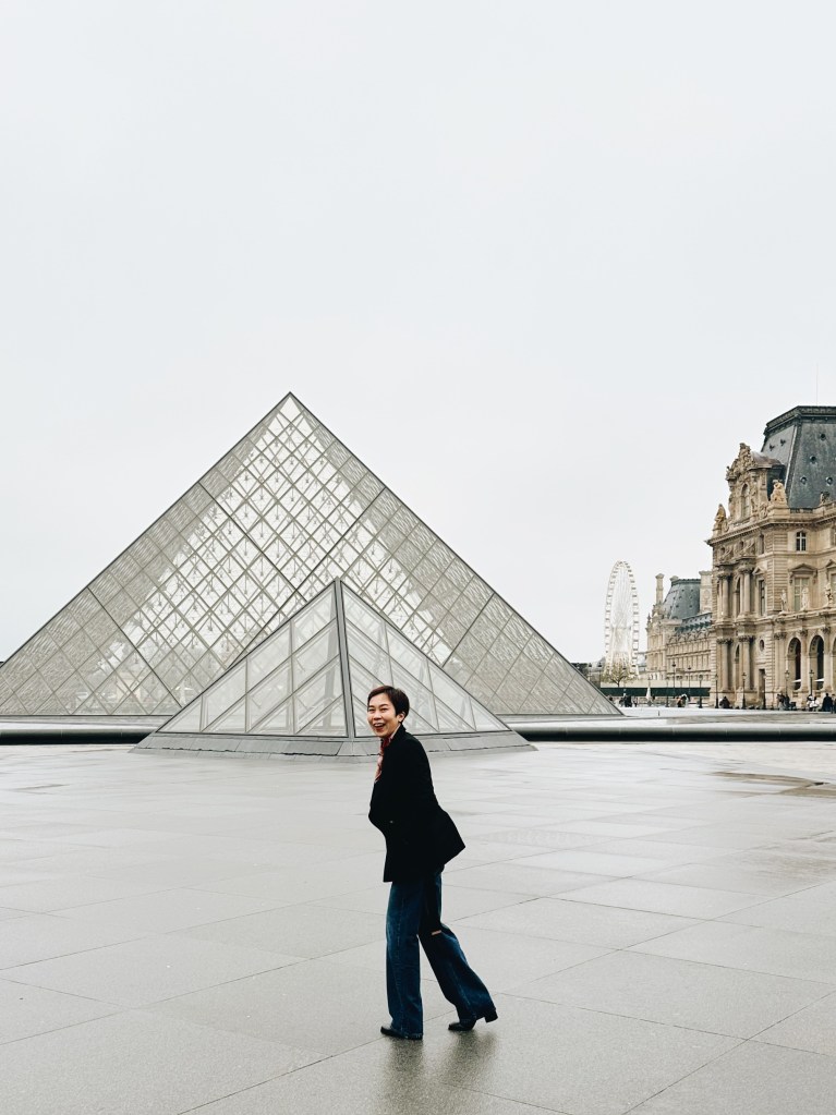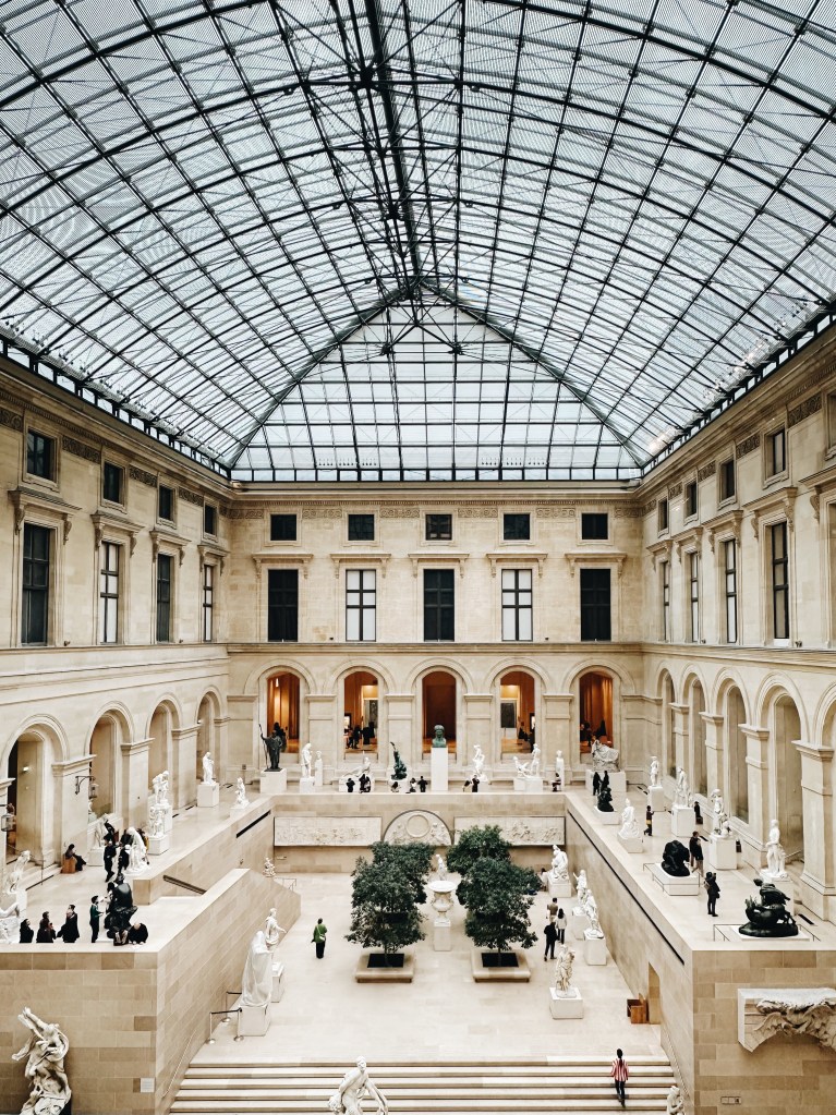 พิพิธภัณฑ์ลูฟวร์เป็นหมุดหมายแรกในลิสต์ Paris 101 ของเรา เราเลือกจองเวลาเข้ารอบแรกสุดของวัน และไปถึงก่อนเวลาซัก 30-40 นาทีเผื่อว่าจะหาอะไรกินตอนเช้า และก็รู้สึกว่าตัดสินใจถูก เพราะช่วง 8 โมงกว่าๆ ก็เริ่มมีคนเข้าคิวตรงทางเข้าหน้าปีระมิดเป็นกลุ่มใหญ่แล้ว แต่เราใช้เวลาช่วงนี้เดินถ่ายรูปได้อย่างสบายใจ เพราะด้านหลังของปีระมิดแทบไม่มีคน พอใกล้ถึงเวลาเข้าก็ค่อยเดินไปต่อแถว การปล่อยคนเข้าไปก็ใช้เวลาไม่นานมากค่ะ ข้างในมีคาเฟ่สำหรับนั่งกินได้แบบไวๆ ก่อนที่จะลุยเดินแต่ละปีกของมิวเซียม