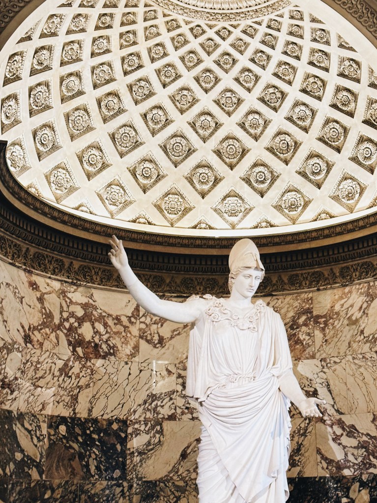มิวเซียมนี้ไม่สามารถจะเดินมั่วๆ ชิลๆ แล้วดูครบได้เลยค่ะ แม้ว่าคุณจะไม่สนใจอะไรเลยก็ยังอยากแนะนำให้หยิบแผนที่ติดมือมาด้วย มิวเซียมนี้มี 5 ชั้น 3 ปีก หลักๆ คนจะเดินดูชั้น 0 – 2 ให้ครบทั้ง 3 ปีก ชั้น -1 และ 0 จะเป็นงานประติมากรรม รูปปั้น รูปแกะสลักหนักๆ ใหญ่ๆ ต่างๆ ส่วนชั้น 1 และ 2 ก็จะเป็นของเบาๆ อย่างภาพเขียน (แต่ก็ใหญ่อลังอยู่) เครื่องประดับ ของตกแต่งต่างๆ และประติมากรรมที่ไม่ใหญ่มาก ถ้าไปรอบเช้าก็แนะนำให้ไปดู The Venus de Milo ก่อน เพราะอยู่ชั้นเดียวกับทางเข้าฝั่งปีก Sully แล้วค่อยไปชั้น 1 ปีก Denon เพื่อดูภาพ Mona Lisa สองจุดนี้มักจะมีคนรุมเยอะโดยเฉพาะถ้ายิ่งสาย ยิ่งมีกลุ่มทัวร์มา จะยิ่งเข้าไปดูยากมากขึ้นค่ะ หลังจากเช็คอินสองจุดนี้แล้ว ส่วนอื่นๆ ก็เดินดูได้ตามสบายค่ะ